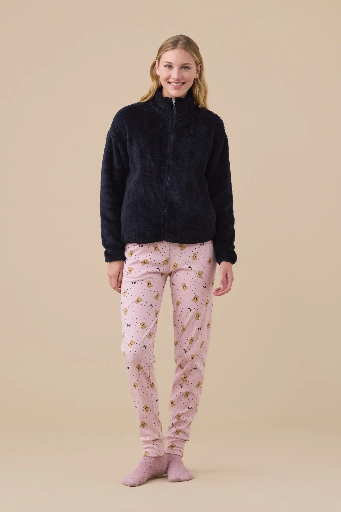 La chiusura frontale con zip aggiunge praticità, mentre il collo e i polsini elasticizzati mantengono il calore e definiscono la silhouette. Ogni dettaglio è curato con attenzione, dalla consistenza vellutata del tessuto alla linea fluida che valorizza ogni fisicità.