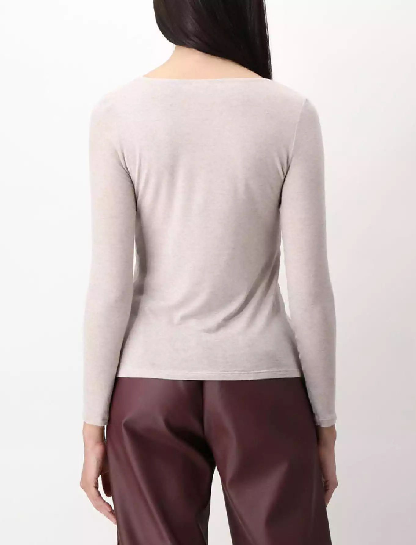 Realizzata in morbido misto cashmere, questa t-shirt rappresenta il perfetto equilibrio tra raffinatezza e funzionalità. Il tessuto è piacevole al tatto, soffice e termoregolante, ideale per le giornate fredde ma anche per gli ambienti interni dove serve leggerezza senza rinunciare al calore. Indossarla è un piacere, grazie alla sua vestibilità fluida e alla manica lunga che accompagna con naturalezza ogni movimento.
